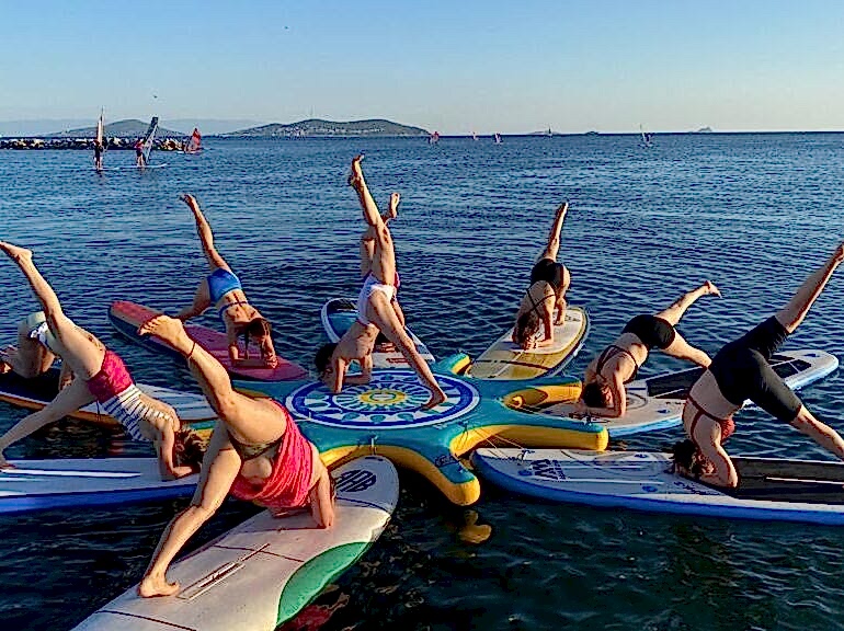 Kadıköy Caddebostan sahillerinde dolaşanların gözüne illaki takılmıştır; deniz üzerinde uzun tahtalar üzerinde yoga yapanlar var, topluluklar halinde… Özellikle cumartesi ve pazar sabahları…